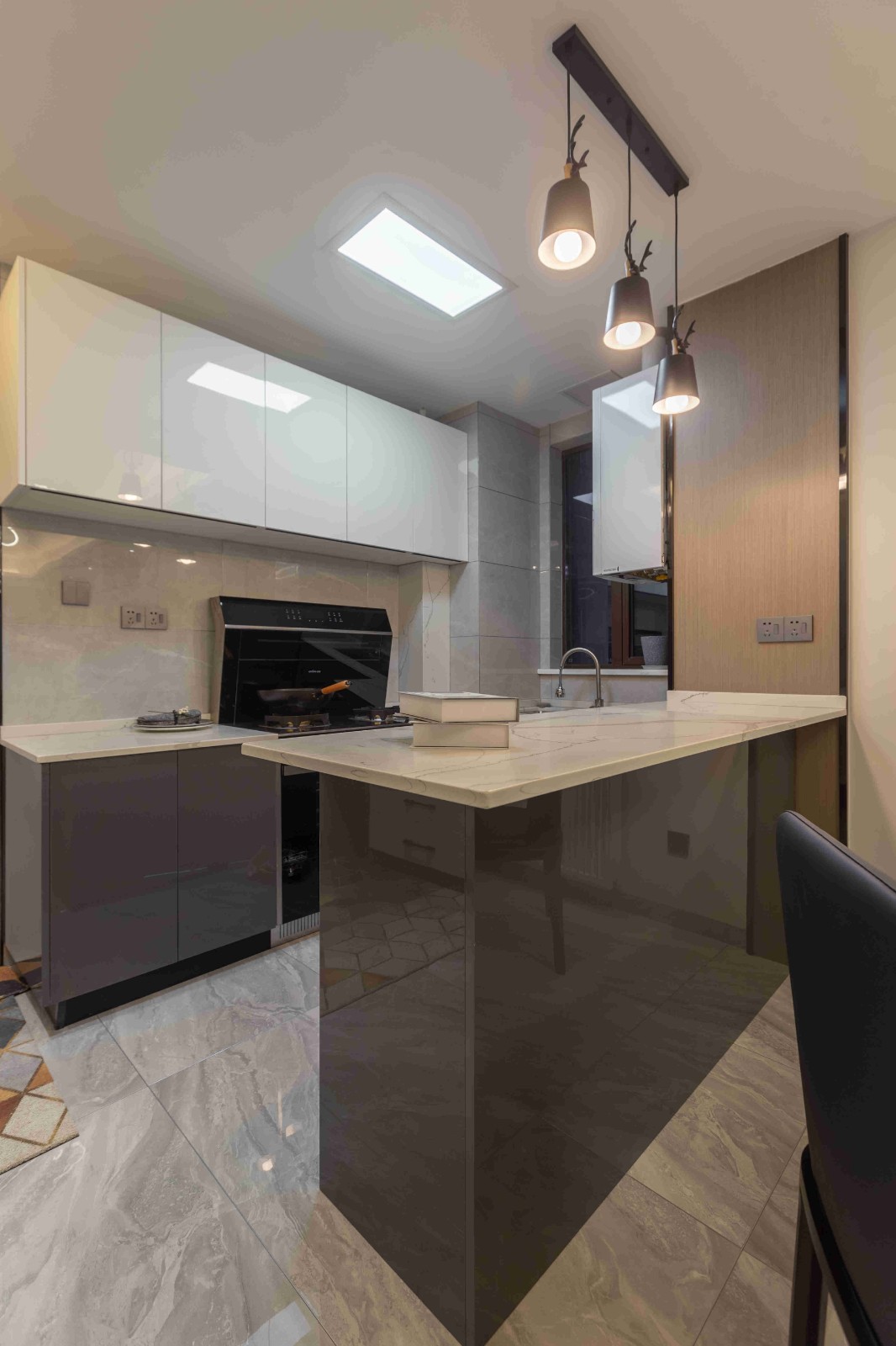 原戶型里,廚房不大,加上業(yè)主的喜好,因此考慮敞開式吧臺結(jié)合中式大圓桌,加上多個(gè)收納柜,滿足了女主人的需求。